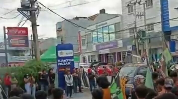 Mesasulbar.com – Mamuju, Ratusan massa yang tergabung dalam Himpunan Mahasiswa Islam (HMI) Badan Koordinasi Sulawesi Selatan dan Barat (Sulselbar) menggelar aksi demonstrasi di Kantor Pelayanan Pajak (KPP) Pratama Mamuju, Jumat pagi (19/12/2025).